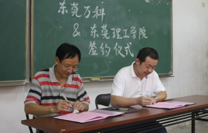 6月28日,文学与传媒学院与东莞万科房地产有限公司举行了实行基地揭牌暨共建协议签约仪式。文学与传媒学院院长田根胜,万科769产业总经理顾卫红,虎门服装云产业总经理蒋锋,文传学院中文系主任许燕转、外语系主任李庆涛等校企代表以及文化产业、英语专业的部分学生参加了本次活动。