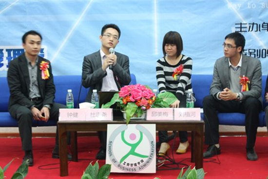 “走向成功”论坛主要邀请我校已经毕业的校友作为嘉宾,旨在为在校同学提供方向指引,增强学习动力。本届“走向成功”论坛分为“企业管理篇”、“职业规划篇”和“公共管理篇”三个篇章。作为论坛第一篇---以“知识改变命运,奋斗走向成功”为主题的“企业管理篇”,邀请到我校校友93级化学专业毕业生、东莞某日资公司厂长兼副总经理邱美梅女士,98级企业管理专业毕业生、东莞某塑料公司总经理刘植河先生,2003级人力资源管理专业毕业生、东莞科技协会科技资讯中心副主任杜志尧先生以及2003级人力资源管理专业毕业生、广东省光大企业集团商业城综合管理部经理钟健先生。四位嘉宾围绕着就业择业创业、企业管理、职场感悟以及大学生活等话题展开了座谈,他们见解深刻,感悟独到,启人深思,现场气氛热烈。