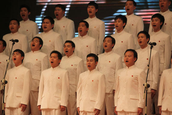 表彰会上,党员们还欣赏了由老师们演唱的《唱支山歌给党听》、《打靶归来》、《永远跟你走》等红歌,学生党员饱含激情地朗诵了原创作品《党呀,祝你生日快乐!》,表彰会在全体党员高声合唱的《没有共产党就没有新中国》中结束。