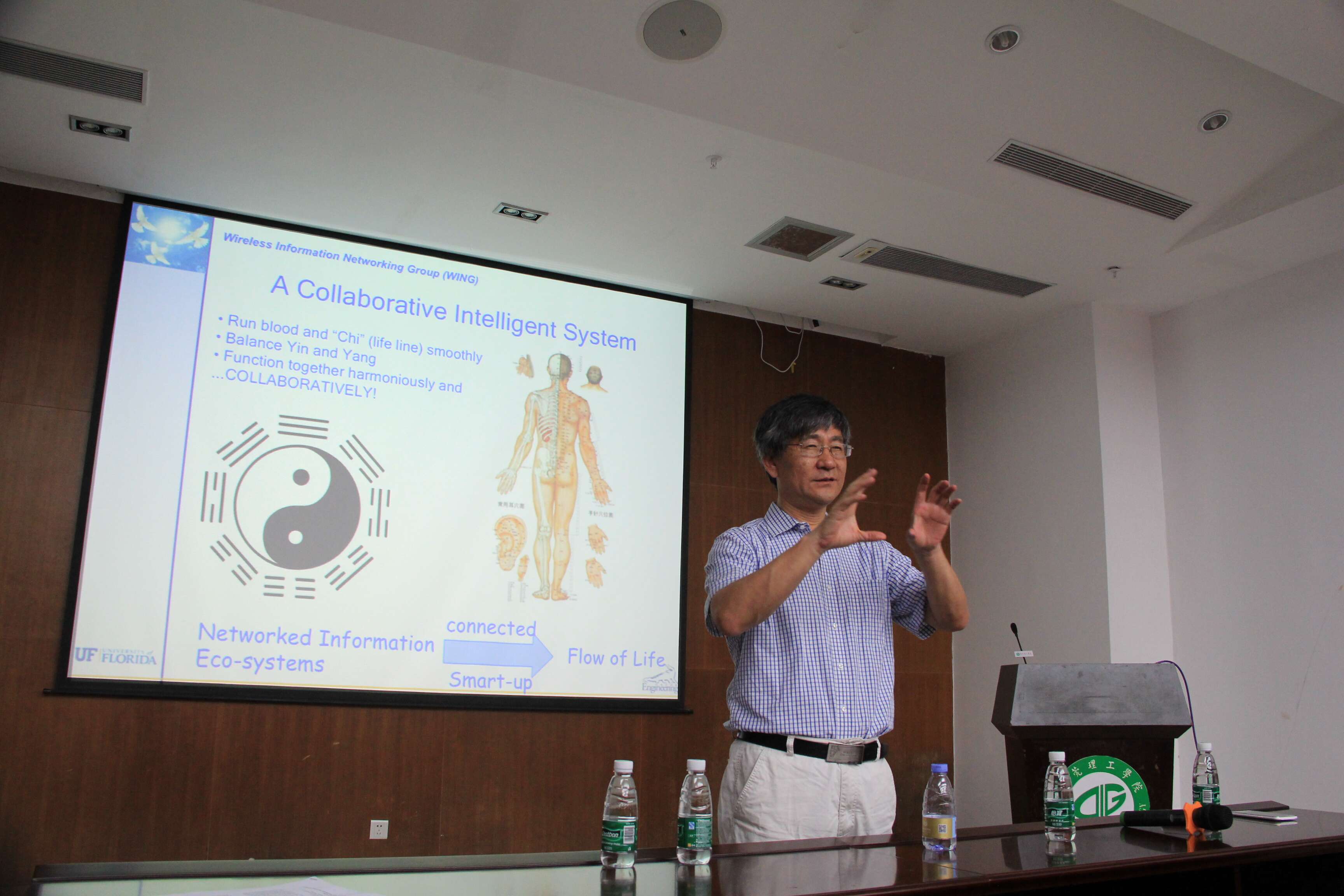 6月2日上午,应我校计算机与网络安全学院万鹏俊教授的邀请,IEEE FELLOW(美国电子电气工程师协会会士)、美国佛罗里达大学电子与计算机工程系方玉光教授,为计算计与网络安全学院师生作了题为“Connected Things for Information, Communications, Computing, and Control (ICCC)”的学术报告。