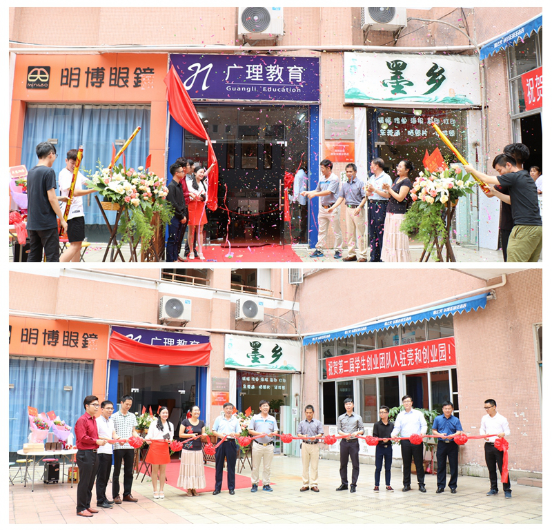 5月25日,在莞城校区莞和园社区学生宿舍12栋一楼,莞和创业园里举行了简单而庄重的剪彩仪式。广理教育和墨香两个学生创业项目,经过近半年的筹备,通过市场调研、撰写创业计划书、参加项目竞选答辩、办公室装修、公司注册、试营业等一系列的准备,终于迎来了正式的开张营业。