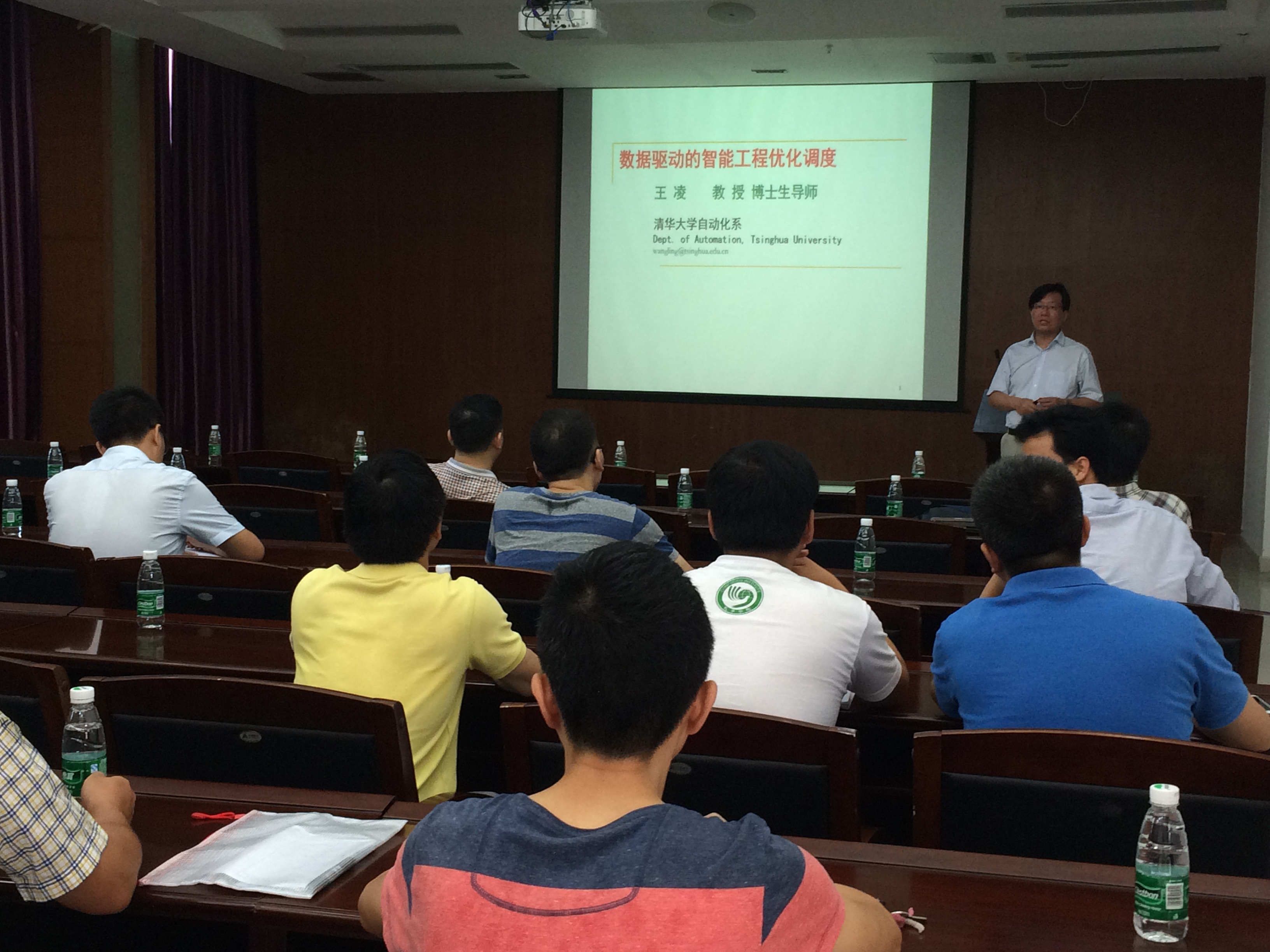 会上,王凌教授围绕工程优化调度的复杂性,首先分析了基于数据驱动的智能优化的必要性。然后介绍了智能优化的原理、步骤以及集成智能优化的框架与核心环节,并从系统论、信息论、控制论角度阐述了若干关键问题。接着王教授介绍了他的研究团队在智能优化理论、智能约束优化和智能调度方面的若干代表性研究工作,并与到会师生分享了多年来的科研体会和心得。整场报告深入浅出,精彩纷呈。报告结束后,师生们纷纷提问,王凌教授对问题一一细致的解答。