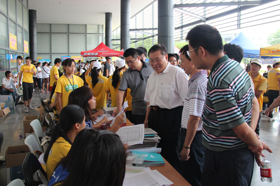 学校领导周致纳、杨晓西、黄碧莲、吕琦元、安少华、邹晓平、戴炳源、李忠红分别到新生报到现场检查和了解迎新工作情况。