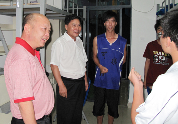 当晚10时30分,周致纳、麦照容来到位于4号学生宿舍楼3楼菁英培训营新生寝室。周致纳和同学们亲切交谈,并十分关切地询问起同学们培训感受,是否适应新的环境,是否习惯校园生活、对住宿与饮食是否满意以及有没有需要改进的地方等问题。