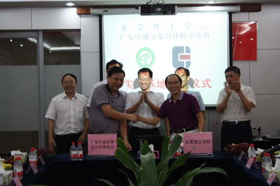 10月14日,我校与广东中诚安泰会计师事务所共建校外实习基地签约仪式正式举行。我校副校长戴炳源,东莞市财政局副局长、市注册会计师协会会长王锐江,我校教务处处长王卫平,广东中诚安泰会计师事务所董事长郑锦洪等参加了签约仪式,并为实习基地挂牌。