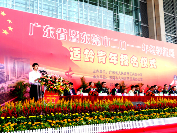 11月1日,广东省暨东莞市二О一一年冬季征兵适龄青年报名仪式在东莞市行政办事中心广场举行。我校组织了100余名有参军意向的在校生参加。