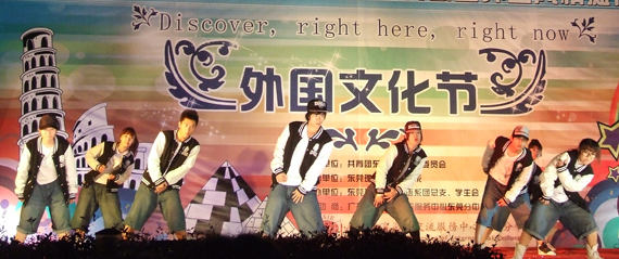 学生在外国文化节开幕式上表演街舞