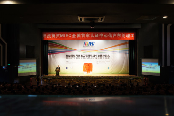 全国首个移动互联网开发工程师认证(MIEC)认证中心落户我校。29日上午,工信部通信行业职业技能鉴定指导中心主任滕伟、中国移动广东分公司副总理丘文辉、我校副校长李忠红等领导嘉宾出席了揭幕仪式。