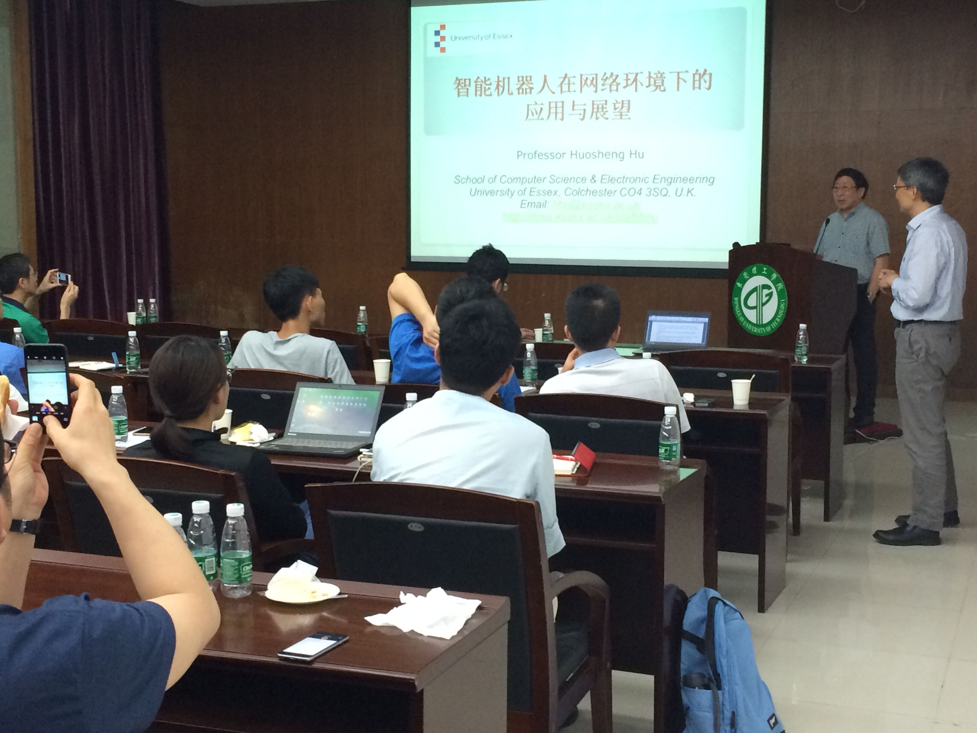 受我校海外引进杰出人才李耘教授的邀请,华南理工大学机械与汽车工程学院博士生导师、国家863项目负责人姚锡凡教授,英国埃塞克斯大学国际机器人专家胡豁生教授,我校柔性引进海外杰出人才、英国伯恩茅斯大学于洪年教授,以及我校海外引进高层次人才陈益副教授作了精彩的学术报告。李耘教授主持了智能制造、智能设计与智能计算方向中英合作和华工—莞工合作与机遇的研讨,并担任本次会议主持人。
