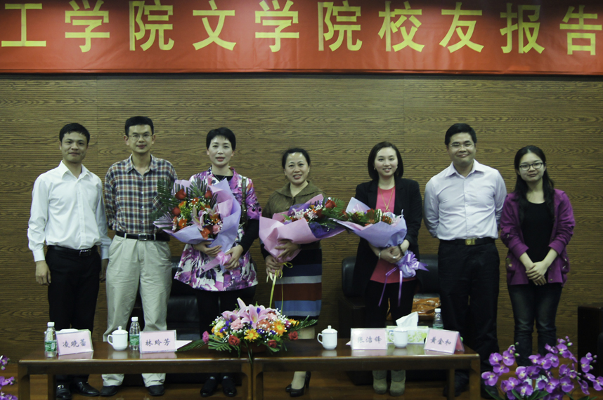文学院三位优秀校友——中国银行大岭山支行行长林玲芳、45612藏宝阁资料团委副书记黄金和、东莞电视台文艺中心副总编张洁锋与文学院师生围绕“大学生品质养成与个性发展”主题就专业学习、工作、个人发展以及个人兴趣与品质养成等内容展开交流。