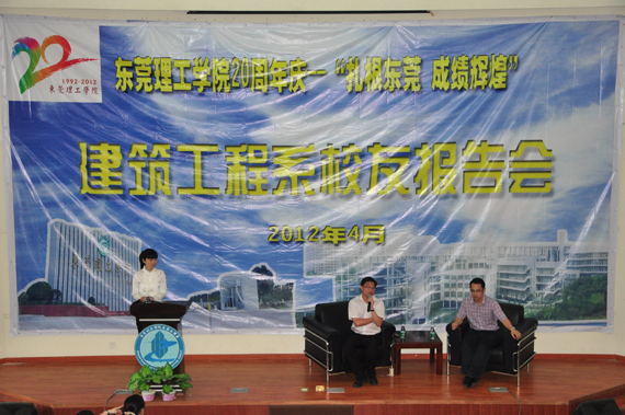 4月12日, 建筑工程系在图书馆报告厅举办校友报告会,建筑工程系校友会会长、凤岗镇城建局局长洪钦仁,校友会常务副会长,东莞永顺建设工程公司副总经理翟志球到场做报告。建筑工程系负责人和学生代表参加了报告会,