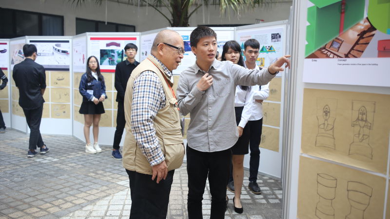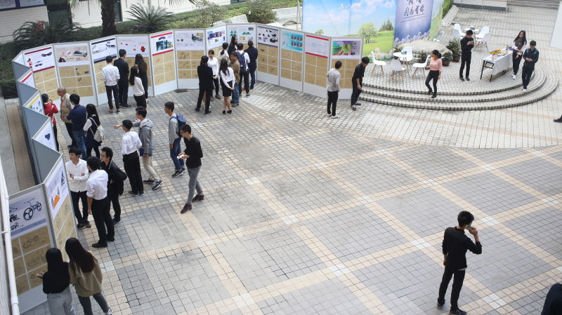 12月26日,粤台产业科技学院工业设计系在莞城校区实验楼中庭举行以Inspiring Fire为主题的期末展,展示2015级学生学习成果,成果展还邀请了校外企业家担任评委嘉宾。