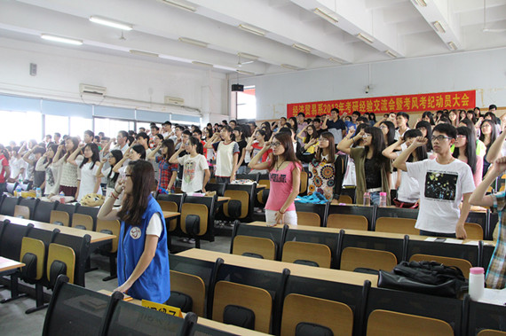 学生代表袁柯浩号召同学们认真地对待考试,充分利用时间,认真复习,诚信应考,拒绝作弊,勇于公平竞争,并在不良念头面前,严于自律。他还带领全体同学进行了诚信宣誓。