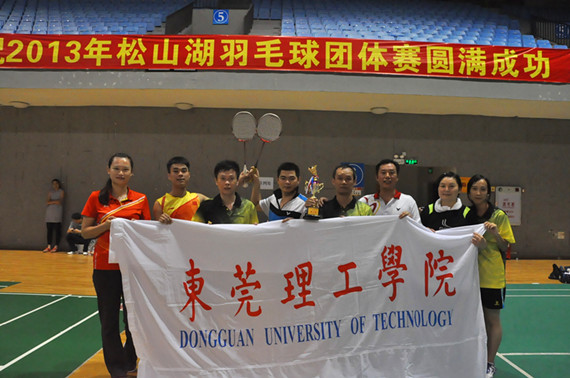 9月16日, “松山湖之家”系列文体活动之2013松山湖羽毛球团体赛决赛在我校体育馆举行。经过前几轮的努力拼搏,我校教工羽毛球队打入决赛,对决松山湖管委会的羽梦队。最后,我校教工羽毛球队以绝对优势,赢得机关组冠军。 本次比赛从9月10日开始,分机关组和企业组两个组别进行。来自高新区各企事业单位的27支代表队300名选手参加了男子双打、混合双打各项比赛。
