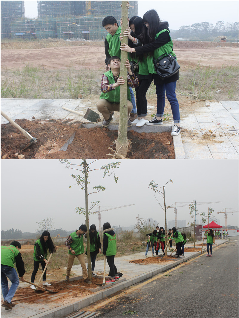 阳春三月,草木秀润。为进一步提高工商管理学院学子的绿化意识和文明素质,工商管理学院志愿服务站在松山湖管委会的号召下于3月8日在松山湖园区的沁园路开展植树活动。