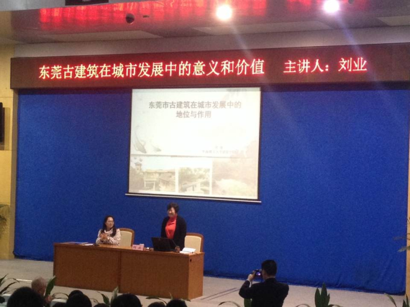 本次讲座由华南理工大学建筑学院城市规划系教授、亚热带风景园林规划设计所长刘业博士讲授。刘业曾参与广州亚运会的重大项目评估、广州市光亮工程评审、广州市中轴线景观评审、广州市和东莞市的文物建筑保护评审等,她用生动活泼的案例,从中国文化传承开始,结合东莞古建筑特色,辅以自己参与建筑设计的实际工作经验,阐述了建筑设计的理念和文化底蕴,拓展了同学们的视野,对东莞本土建筑有了进一步的深入理解。