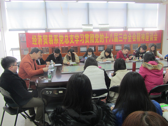 12月19日,经济贸易系党总支举办了学习贯彻党的十八届三中全会精神座谈会。经贸系辅导员和全系学生党员参加了座谈。