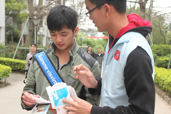 面对目前比较严重的禽流感感染人群的严峻形势,师范学院志愿服务站于3月13日在学生公寓广场开展预防H7N9禽流感校园宣传活动。
