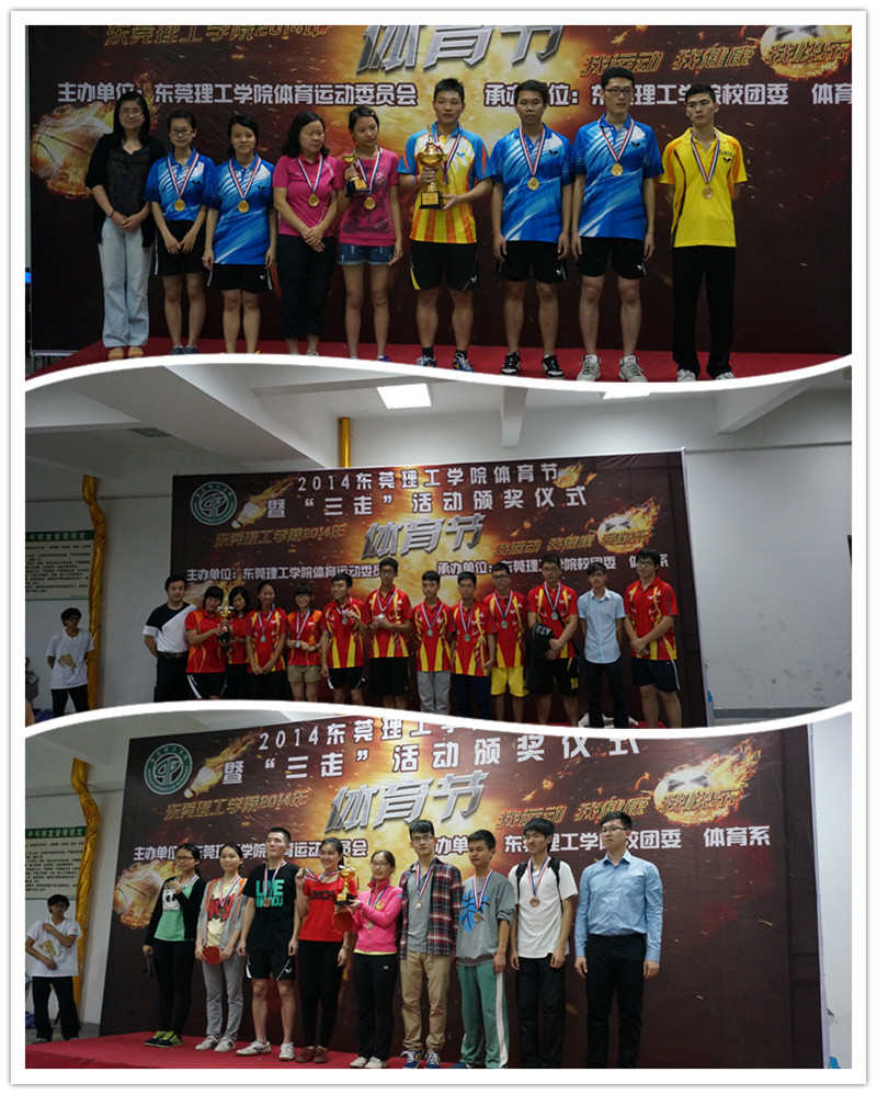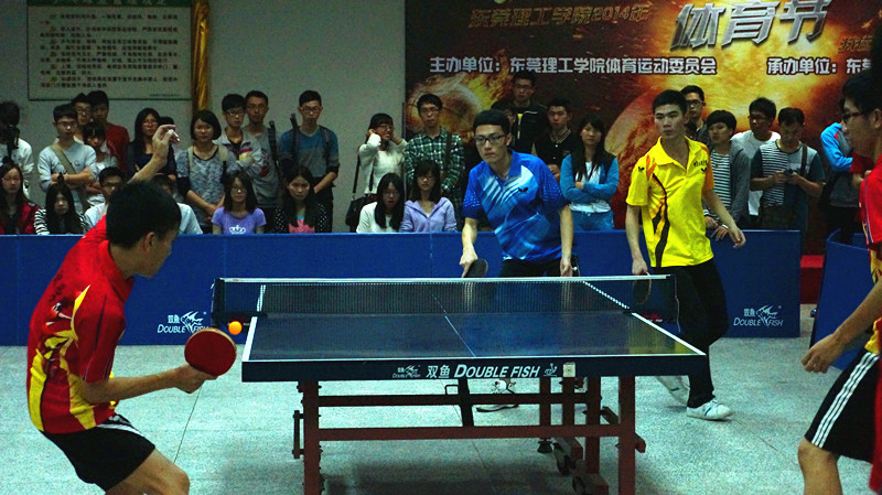 5月6日,我校在体育中心乒乓球室进行了2014年体育节之乒乓球联赛决赛。 此次乒乓球决赛以团体积分的形式进行,无论在季军争夺赛还是冠军争夺赛中,各团队都充分表现出浓厚的团队精神,经过激烈的比拼,冠军由电子工程学院夺得,化学与环境工程学院获得亚军,建筑工程系获得季军。 此次,乒乓球比赛评出了“最有价值球员”,由电子工程学院的罗慧娟同学获得。