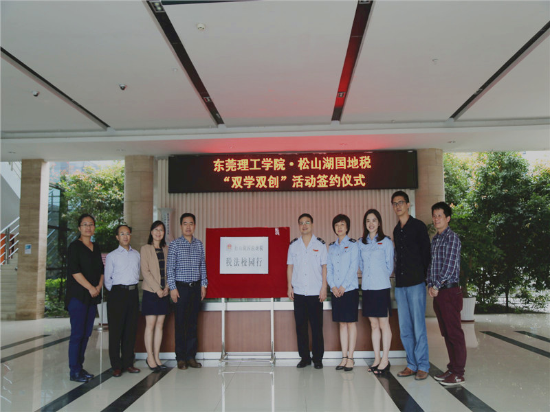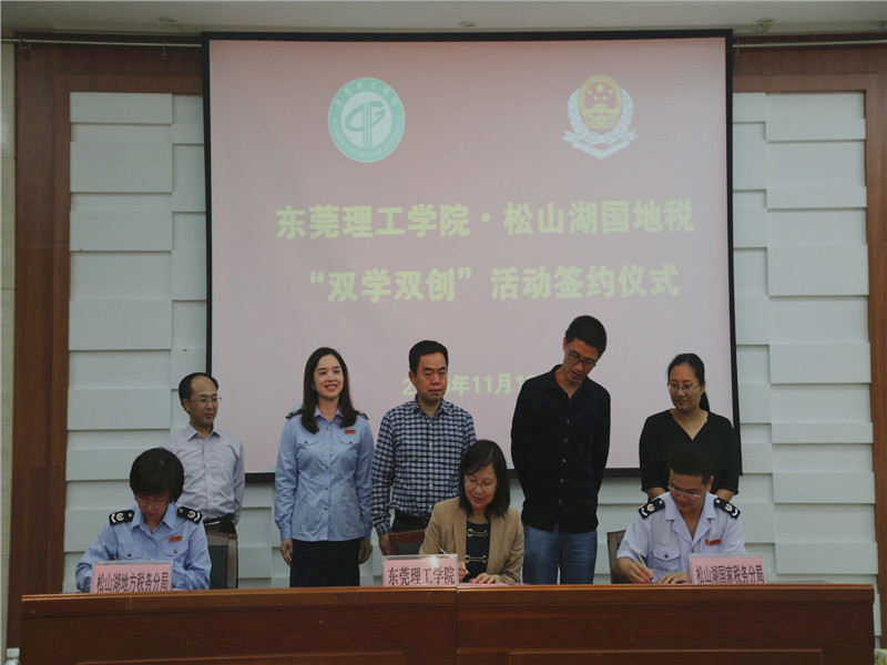 11月18日,经济与管理学院与松山湖国家税务分局、地方税务分局在松山湖校区学术会议中心举行校税“双学双创”合作签约仪式。我校教务处处长李勇、经管学院院长刘继云,松山湖国家税务分局局长吴钰全、松山湖地方税务分局局长刘继群代表校税双方为“税法校园行”品牌和“体验式”实习基地揭牌。