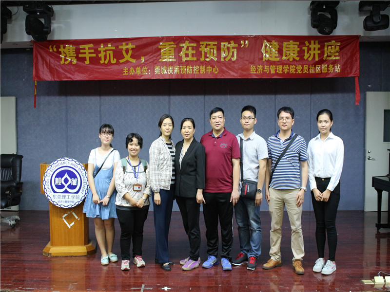 为打造文明、友爱、健康社区,增加同学们健康安全知识,11月16日晚,经济与管理学院党员社区服务站面向社区学生,在莞城小剧场举办了“携手抗艾,重在预防”健康义诊讲座,邀请东莞市疾控中心朱建琼医师担任主讲。