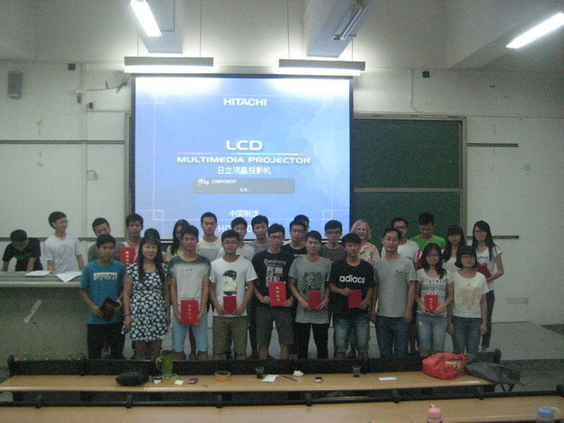 随后,全体学生和老师观看了2012级卓越班大一到大二英语学习情况的视频。据统计,为了提高学生的各种英语能力,尤其是听说能力,2012级卓越班在大一和大二两个学年里共组织英语早读240次、英语角活动34次、英语课文陈述10次、英语夏令营1次、英语比赛4次(包括英语听写大赛、英语口语大赛、英语辩论赛和英语写作大赛),还开展了个人英语复述新闻或故事及英语公共演讲等活动。在与2011级和2013级卓越班英语辩论赛中,2012级卓越班获得三个最佳辩手和两个最佳辩论队,还有方良涛同学在广东省“外研杯”英语写作比赛中获得第三名。这些活动使大部分学生由不敢开口说英语、不会说英语,到现在可以大声勇敢地用英语进行交流,同时学生的英语阅读和写作能力也得到很大的提高。