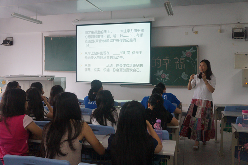 讲座上,叶妙玲通过与同学们的交流互动,清楚地向同学们讲解了专念的概念,同时引用一些生活小事加以说明。叶妙玲为了帮助同学们更好地理解,还引入了两个专念实验:动物感知专念和孩子感知专念,使同学们更形象生动地了解了专念的重要作用和无处不在的影响力。最后,叶妙玲希望引导同学们正确运用专念,调整自己的心理状态。