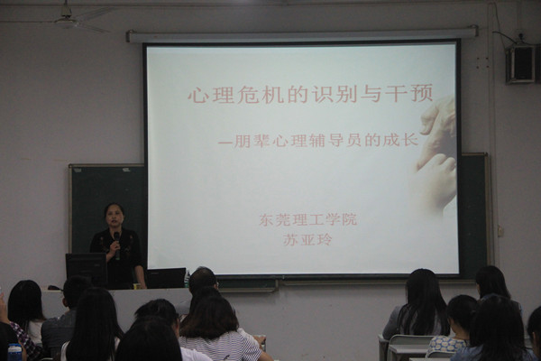 讲座上,苏亚玲副教授分两个环节展开,在阐述心理危机的识别干预时着重分析了心理危机产生的根源,提醒学生应及早干预、处理创伤方能度过危机,提高心理健康水平。此外通过通过例举了一系列表现幻觉、妄想与人格巨变的异常心理,使学生认识到“陪护、倾听、共情”的关键。她希望朋辈心理辅导员及时发现问题,第一时间通知辅导员,积极配合心理干预。