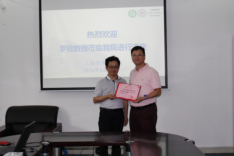 会后,工商管理学院聘请罗欣博士为工商管理学院客座教授,并举行了现场颁发聘书仪式。