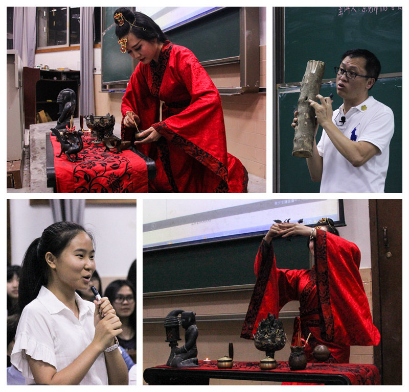 尹丰田围绕“莞香与东方香都”主题,向我校师生介绍了莞香的历史文化、莞香与沉香的关系,阐述了自己对如何复兴莞香、如何传承莞香的见解。沉香协会工作人员在现场还发放了一些香料、香木,让同学们更近距离感受香料的魅力,体会香料给人的独特感觉。同学们兴趣颇高,在互动环节,对于沉香的种植、产业化、植被保护等方面与尹丰田及协会工作人员进行了互动交流。 (曾小苑/文 余艳琳/图)