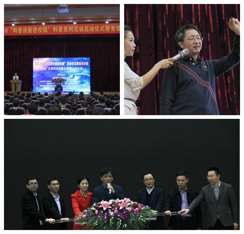 活动中,党员们参与了东莞2016年“科普讲座进校园”启动仪式暨首场讲座“揭秘广义相对论的重大预言——引力波”。讲座中,南开大学物理学院教授孟新河向大家重点阐述了地面引力波探测器LIGO对引力波的发现和探索做出的巨大贡献。随后,他还讲述关于引力波的基础知识,并介绍了人类发现和探索引力波的历程,让大家更好地了解引力波。