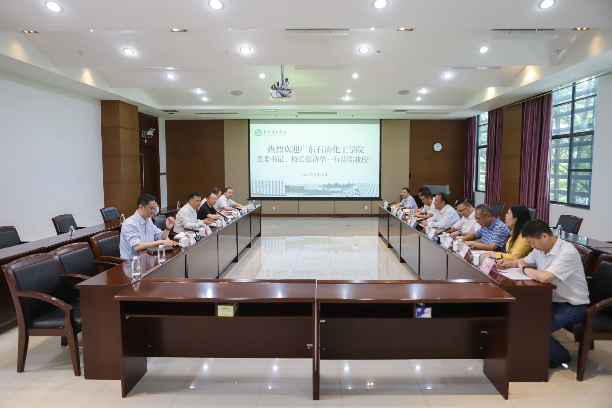 5月15日,广东石油化工学院党委书记、校长张清华率队来校,围绕新时代高等教育评价体制机制改革开展交流。校长马宏伟、校党委副书记李忠红,以及学校相关职能部门、二级学院负责人参加本次交流。
