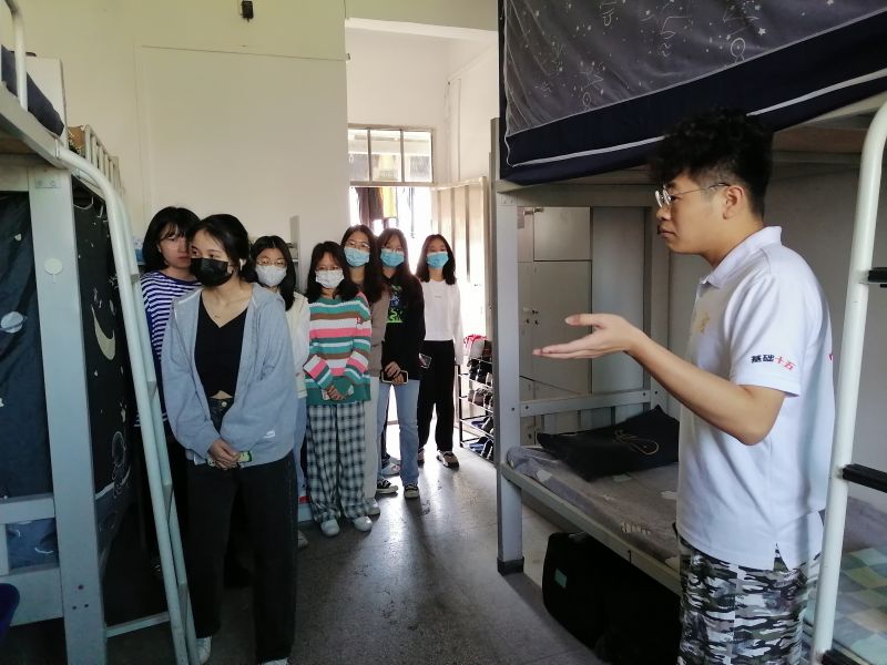 社工与学生们一起走访了退伍军人、学生党员宿舍,宿舍长示范了桌面物品整理、行李箱摆放、厕所清洁、垃圾桶管理等宿舍日常管理工作。第一次走进优秀宿舍,学生们对宿舍整理的细节充满了好奇,“你们把沐浴露之类的洗漱用品都放哪里了?”“怎么保证轮流值日能够坚持下去?”“怎么能够让桌面长期保持整洁?”示范宿舍的同学一一作出解答,传授经验。