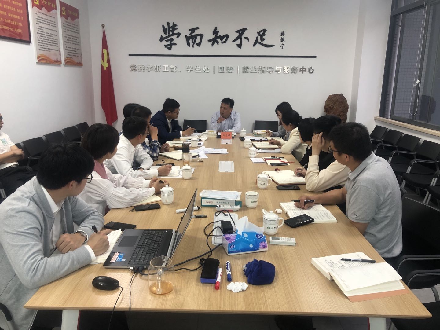 调研会上,党委学研工部、团委、就业指导与服务中心主要负责人汇报了部门工作职能、人员组织和整体工作情况,各科室负责同志汇报了本科室的主要工作。