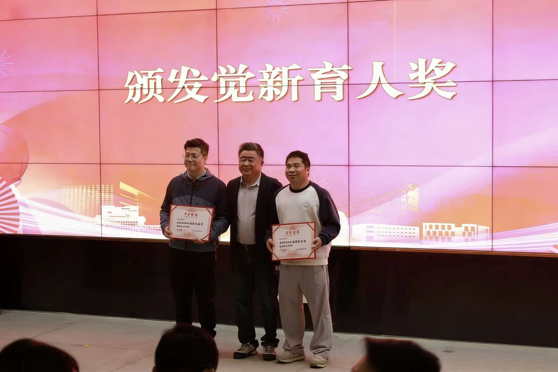 江浩然校友继续心系学校育人事业,为学生工作队伍设立“觉新育人奖”,陈泳源、邓武均两位同志获奖。江浩然颁奖并致辞,他赞赏了我校学生工作队伍在立德树人实践中付出的努力与取得的成效,希望大家坚守育人初心,持续探索创新,在培养担当民族复兴重任的时代新人的事业中作出更大贡献。