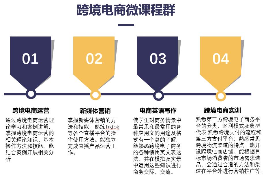 首批入驻修读的学生来自经济与管理学院和文学与传媒学院,他们是通过自愿报名、公开遴选等方式,进入常平学院共同修读为期近两周的跨境电商微课程群。该微课程群是由经济与管理学院、文学与传媒学院联合常平跨境电商产业园、东莞精密仪器设备有限公司共同设计打造的跨境电商产教融合的微课程群,师资团队由校内专任教师和业界资深专家共同组成,课程依照产业需求,对知识体系、专业内容和技术方法进行设计规划,具有满足学科交叉、面向产业需求、理论实践结合等特点。课程群共有跨境电商运营、新媒体营销、电商英语写作、跨境电商实训等4门子课程。通过微课程群教学、企业走访观摩,引导学生注重理论学习和实践融合;通过理论学习、理论与实践融合和项目实践等课程环节提升学生解决实际问题的能力。