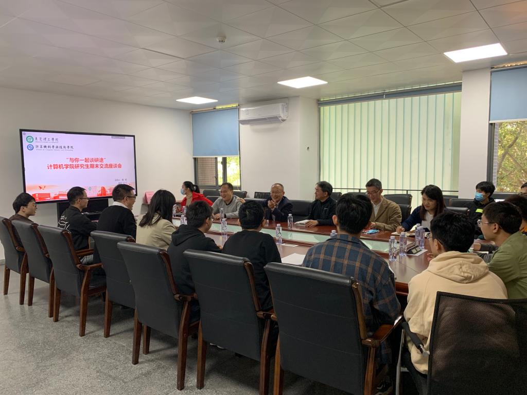 12月13日,研究生处全体党员前往计算机科学与技术学院,召开“与你一起谈研途”研究生期末交流座谈会。会议由计算机学院副院长陶铭主持,研究生处处长程发良、研究生导师代表、研究生辅导员、研究生秘书及研究生代表参加座谈会。