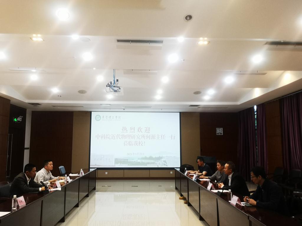 3月23日,中国科学院近代物理研究所国家杰出青年科学基金项目获得者何源研究员一行4人到校洽谈科教融合协同开展研究生联合培养工作,学校研究生处和学院相关负责人、合作导师参加了交流。