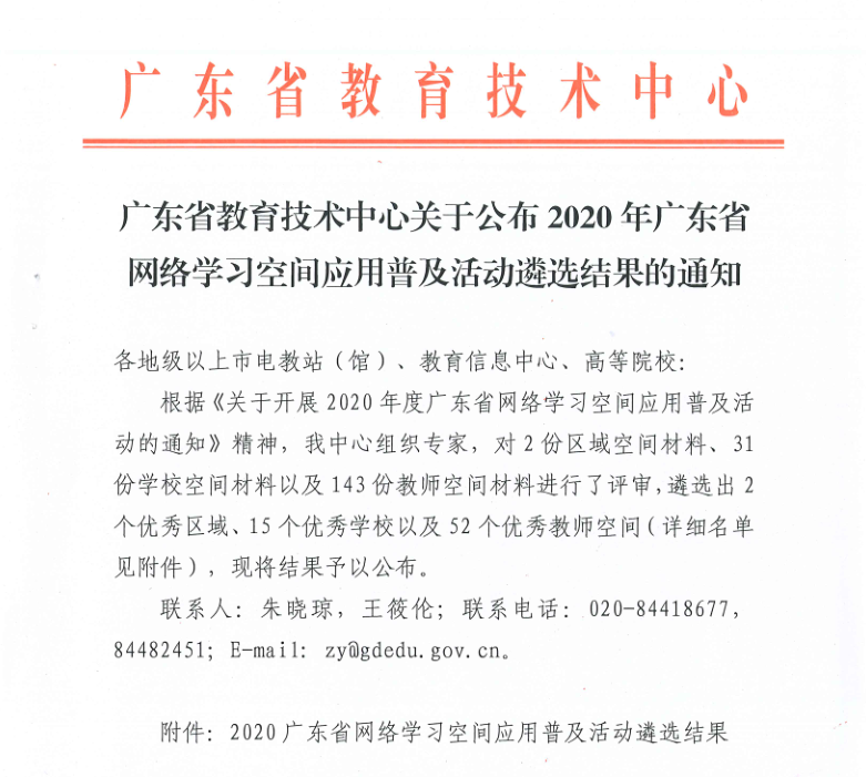 近日,广东省教育技术中心公布2020年广东省网络学习空间应用普及活动遴选结果,我校再获佳绩。粤台产业科技学院黄为老师和马克思主义学院谢敏老师的网络教学空间获评为“优秀教师空间”。
