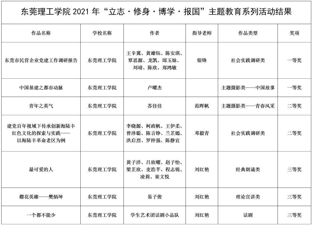 日前,省教育厅公布了2021年“立志·修身·博学·报国”主题教育系列活动结果。我校共有7个项目获奖,并获得了优秀组织奖。