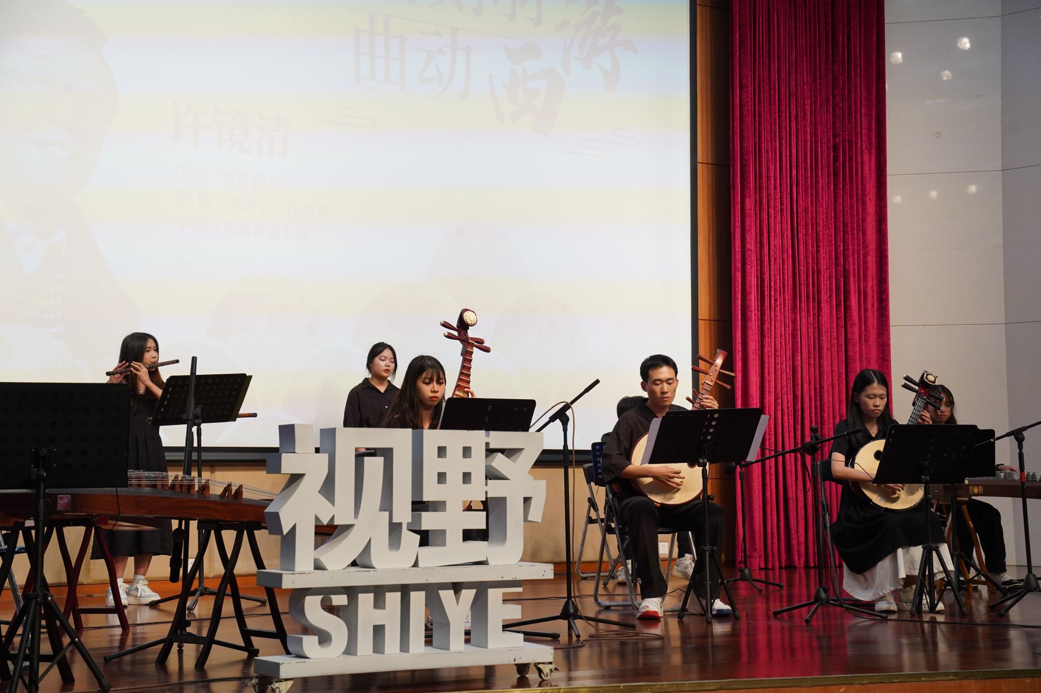 许镜清为同学们分享了《云宫迅音》的创作历程。他当时和创作团队力排众议在中国名著《西游记》改编的影视剧中加入电音演奏,从而缔造了一代经典曲目。许镜清认为,一个创作者拥有开放包容、创新发展的品质尤为重要,而具备逆水行舟、坚持不懈的精神更是其成功的关键。