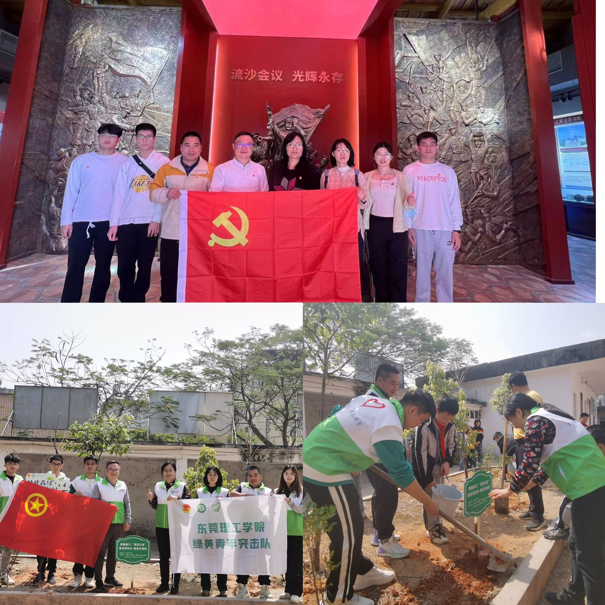 在学校首批共建项目之一“和美乡村”共建示范点里湖镇富美村,学校团委联动普宁团市委和揭阳职院团委,组织师生代表到学校教育集团成员校里湖镇富美小学,和富美小学校长及师生、村委会干部一同参与义务植树活动,共种下紫花风铃木。通过大手拉小手,引领爱绿植绿护绿新风尚,为绿美普宁、和美乡村贡献莞工青年力量。