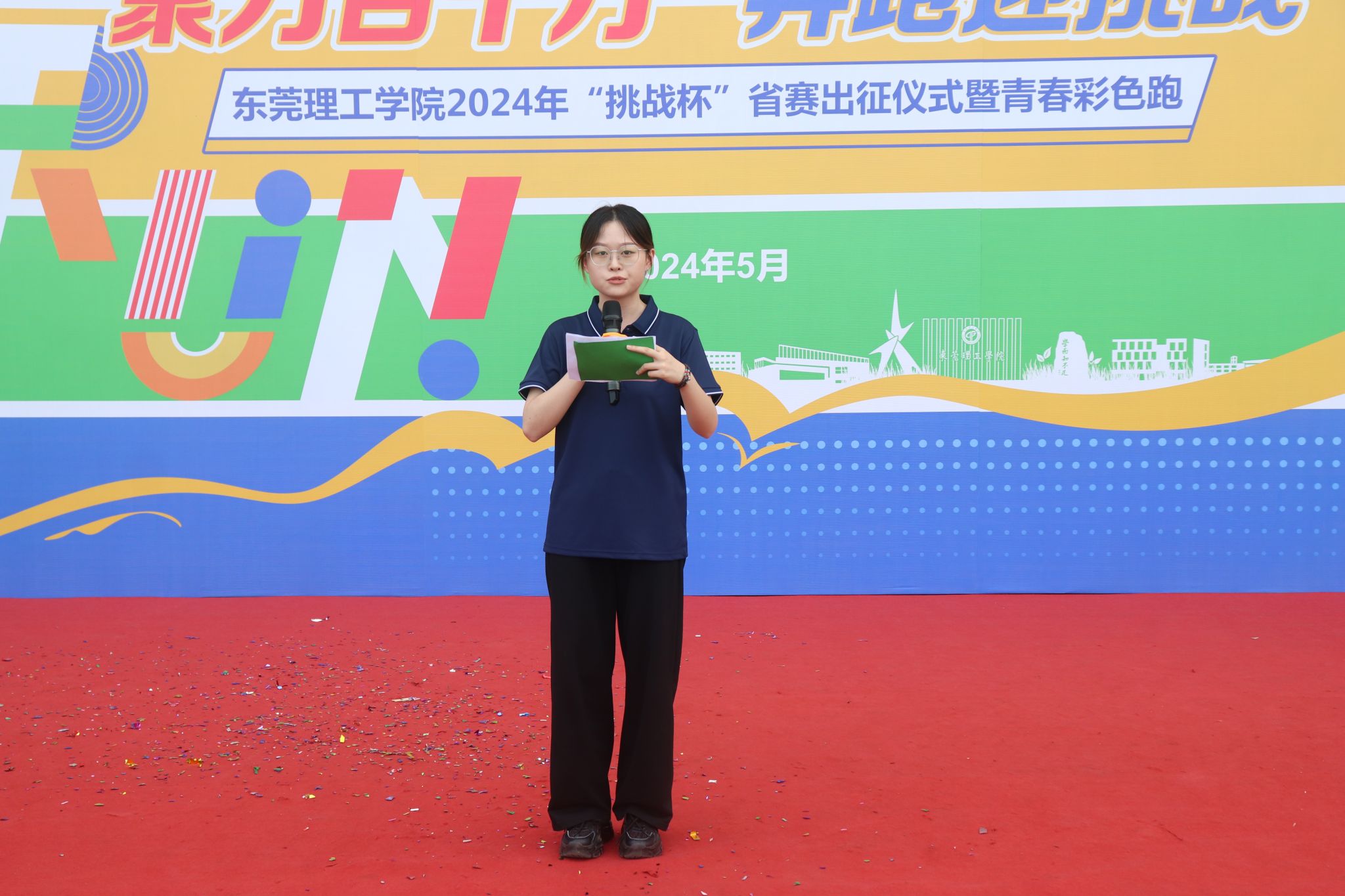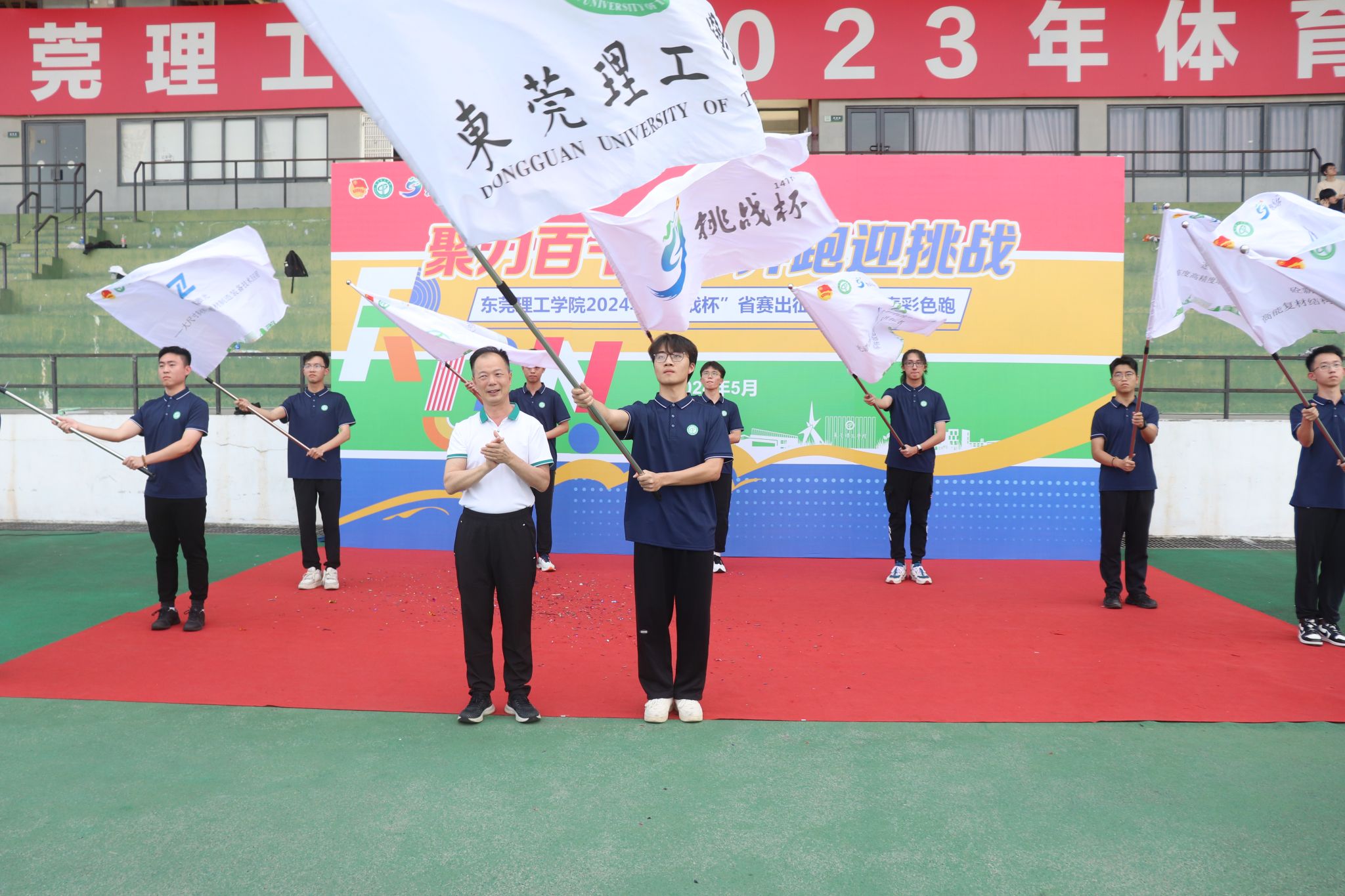 5月16日,学校在两校区田径运动场举行第十四届“挑战杯”广东大学生创业计划竞赛终审决赛出征仪式暨青春彩色跑活动。学校党委副书记李忠红为出征队伍授旗鼓劲,预祝参赛队员取得更好成绩,并为2024年青春彩色跑活动宣布开跑。
