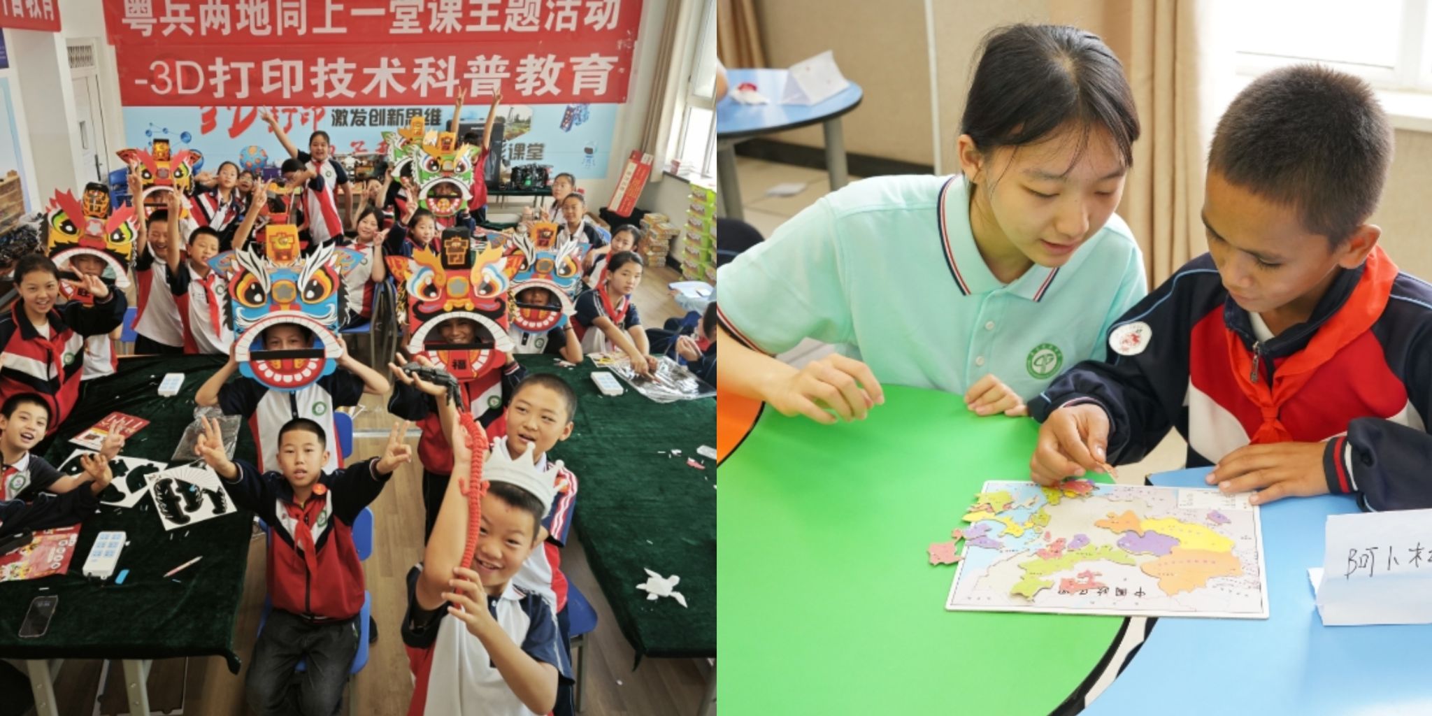 队员们为小学生们讲述神奇的雄狮少年故事,开展精彩的舞狮教学活动,将岭南醒狮文化升华成为联结粤疆的情感纽带,推动新疆优秀地域文化和内地各民族优秀文化交流互鉴。组织不同民族学生开展了生动的民风民俗分享交流活动,并通过中国地图拼图游戏,在幼小的心灵中描绘出民族共同繁荣的美好画卷。