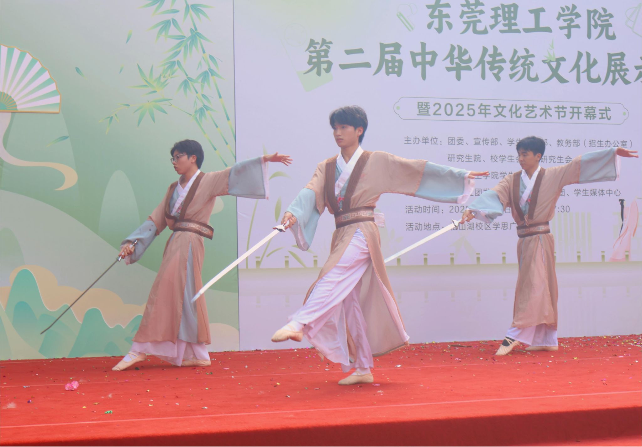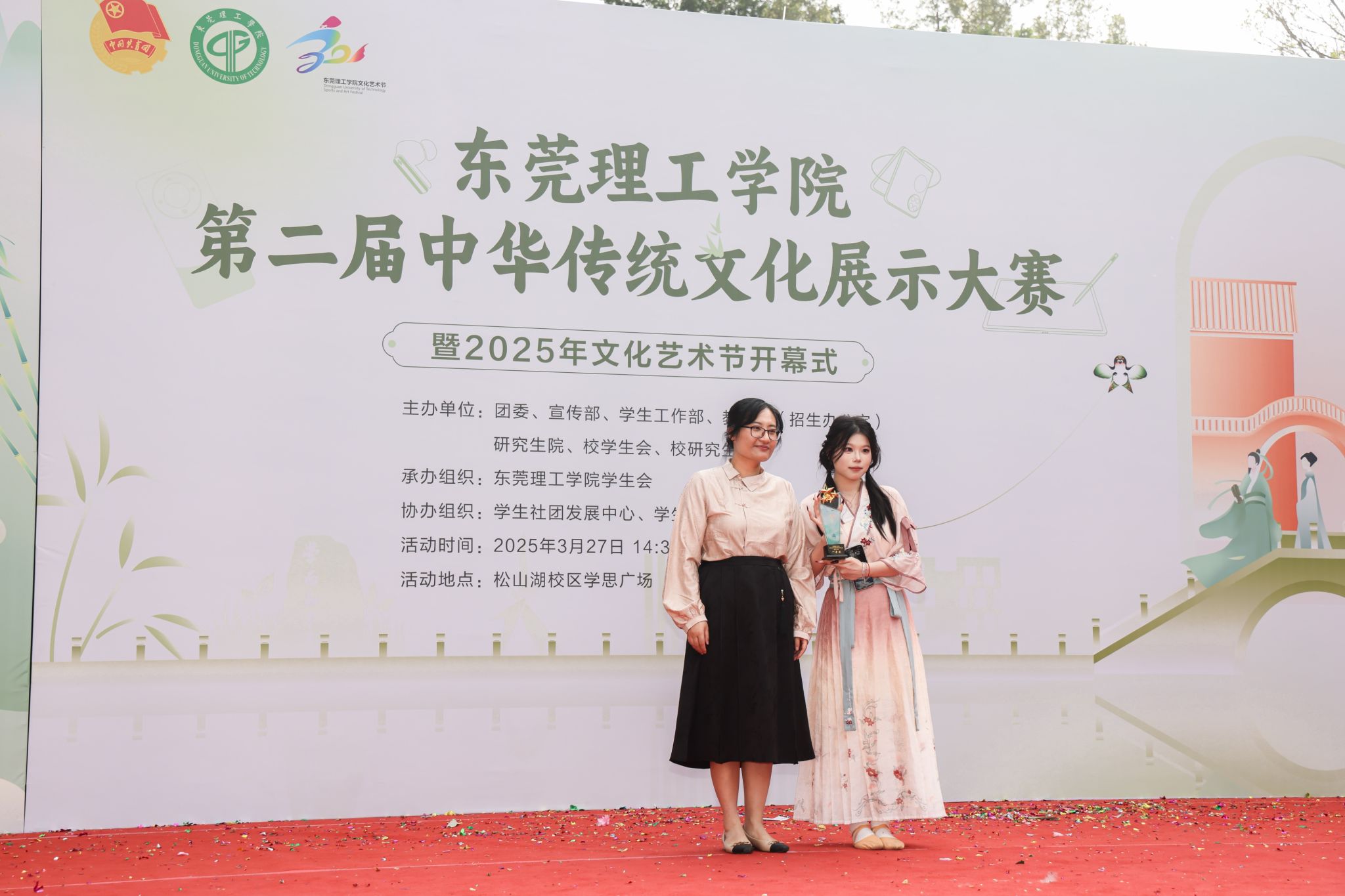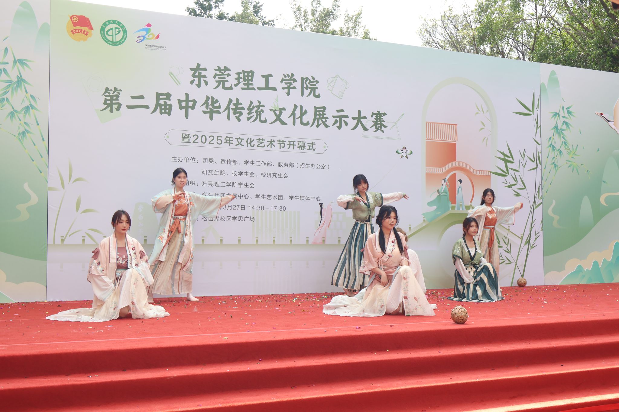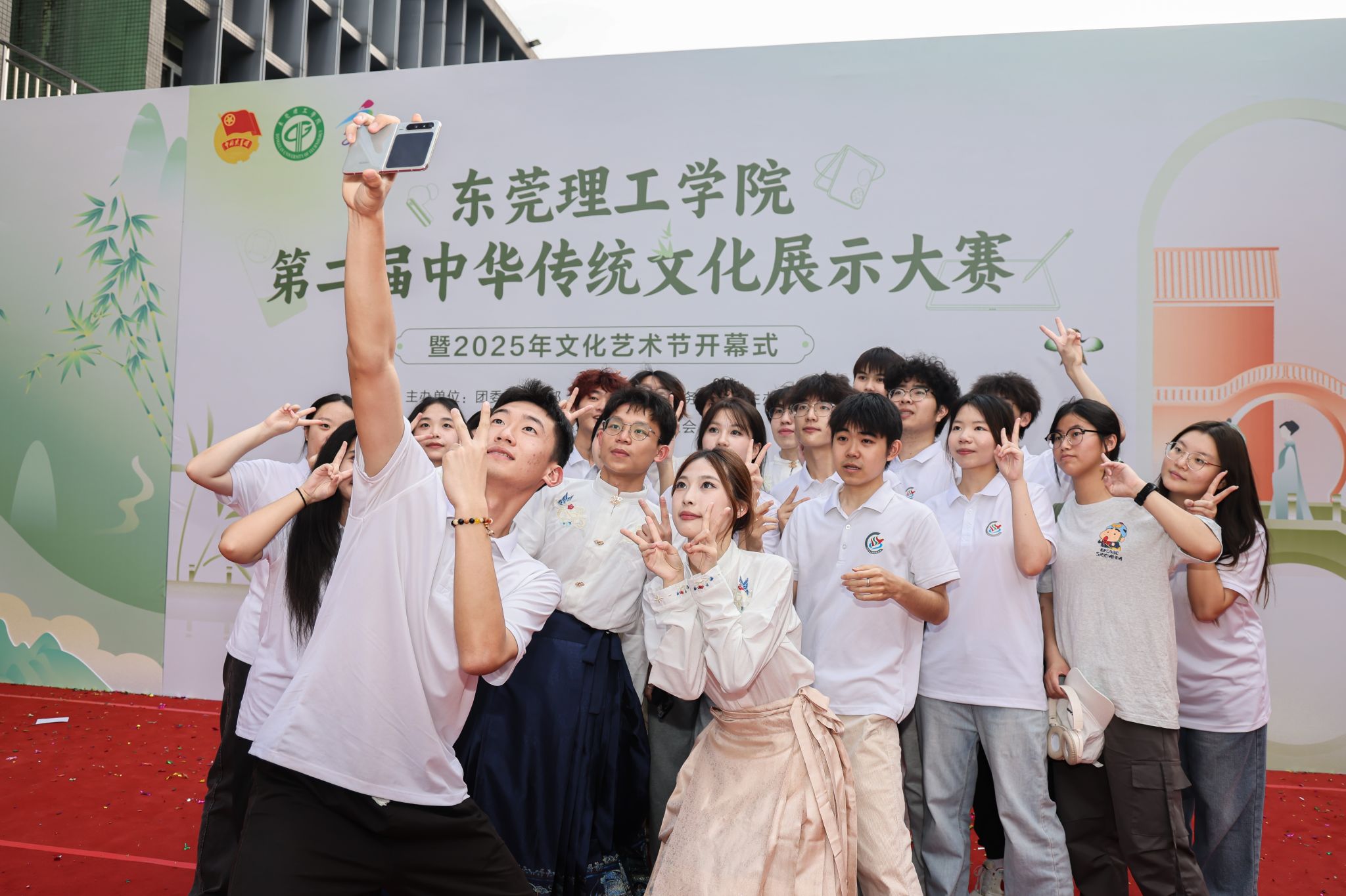 3月27日,由校团委、宣传部、学生工作部、教务部联合主办,校学生会、学生社团发展中心、学生艺术团及学生媒体中心共同承办的中华传统文化周系列活动之第二届中华传统文化展示大赛暨2025年文化艺术节开幕式在松山湖校区学思广场举行。校党委副书记、校长马宏伟,校党委委员、宣传部部长邹琼,文化艺术节组委会全体成员、各部门负责人与师生代表齐聚一堂,共同见证这场传统文化的盛会。