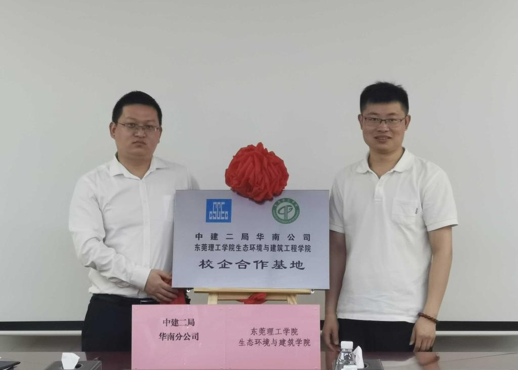 4月7日,我校与中建二局华南公司共建的教学实习基地签约暨揭牌仪式在中建二局东莞分公司举行,我校生态环境与建筑工程学院土木工程系主任艾心荧博士、系副主任丁其乐博士与中建二局东莞分公司党总支副书记褚文科、总工程师孟珊、办公室主任王龙等出席。