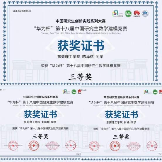 近日,2021年“华为杯”第十八届中国研究生数学建模竞赛获奖名单公布,机械工程学院2021级硕士生刘隆辉、陈泽杭、肖涵组成的队伍从17962支参赛队伍中脱颖而出,荣获E题“信号干扰下的超宽带(UWB)精确定位”全国三等奖。