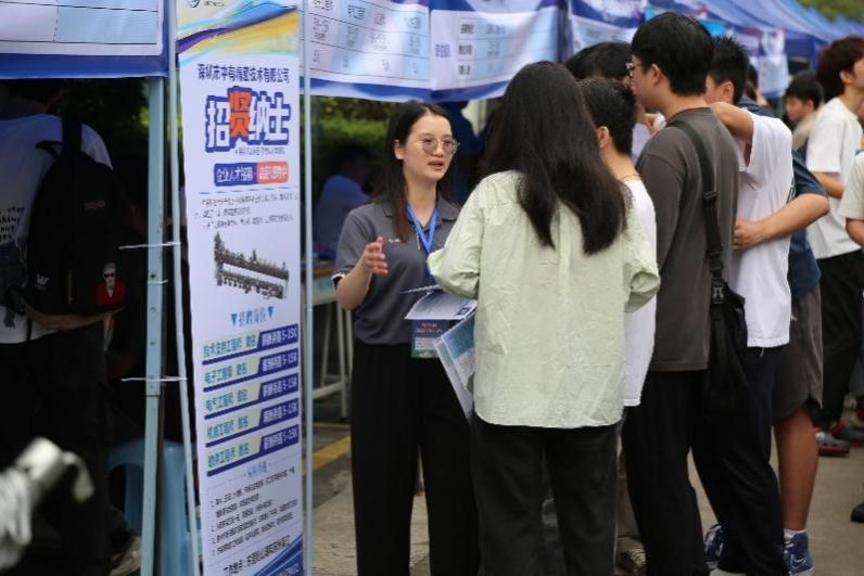 “这次招聘会可以让我们与应聘者面对面进行沟通,更好地进行综合评估,也方便学生更好地了解我们公司。今天,过来招聘的学生还是挺多的,目前已经面试了一些学生,我们觉得表现都挺好的。”广东蓝光智能科技有限公司招聘专员何炳松说。