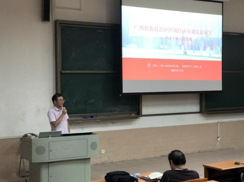 9月17日,陈田博士为经管学院全体专任教师作了题为《广西壮族自治区区域经济协调发展研究——从不平衡走向协调》的学术报告。