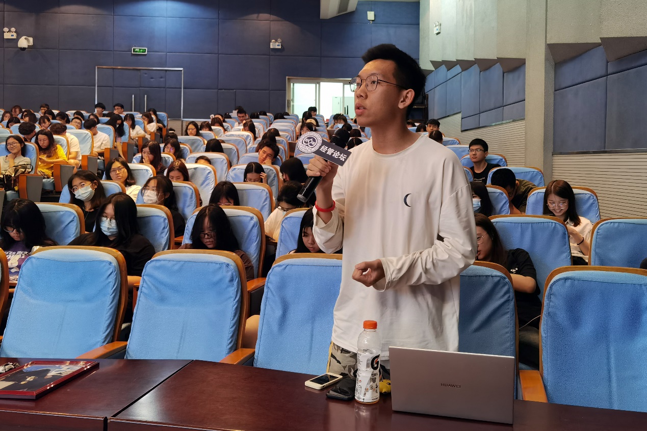 交流环节中,同学们踊跃提问,张学英耐心解答。针对人工智能全规模运用后是否会吞噬或者统治人类等相关问题,张学英指出,人工智能是技术进步的一种表现,虽然一方面会导致失业,但另一方面会增加新的就业岗位。她认为人工智能的发展不是科技反噬人类的预警,而是人类更新人力资本的一个过程,我们要去适应人工智能带来的改变。